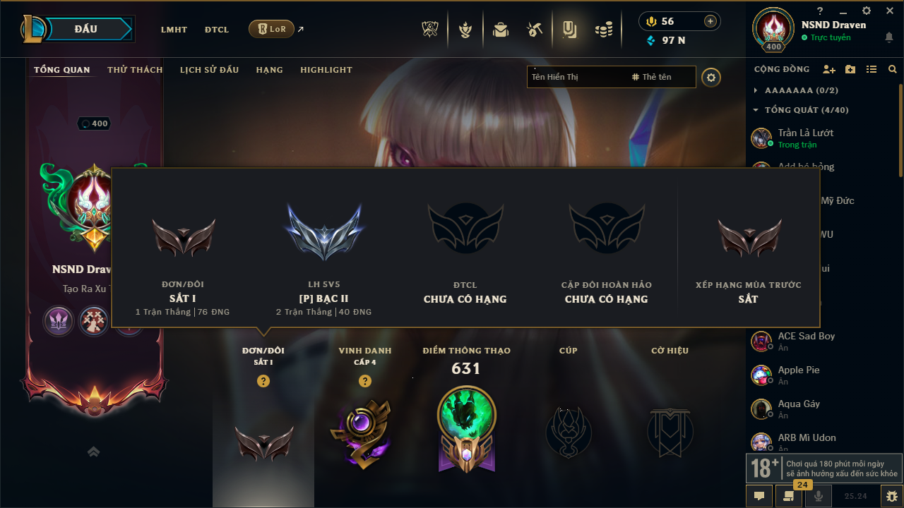 Acc Liên Minh #12584 - Rank: Sắt - Khung: Sắt
